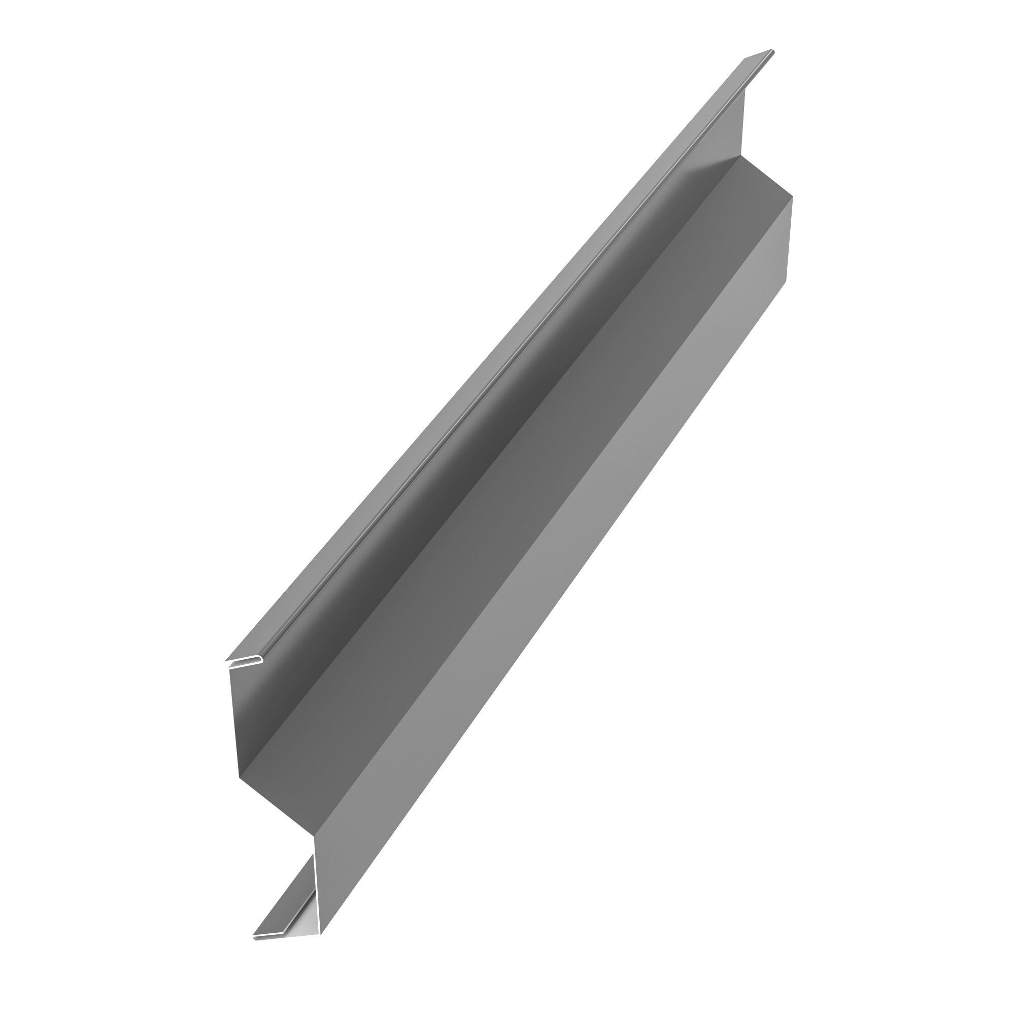 Пристенная планка накладная для металлочерепицы. Служит для оформления примыкания листов металлочерепицы к стене или трубе. Монтируется в стену, накрывая верхнюю часть элемента "Планка примыкания".